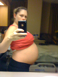 Gosh, where to start... well, as I mentioned before, I was put back on hospital bedrest at our Sept. 7th appointment when my cervix shrunk from 14 mm to 8mm - yikes! I was really scared - but I knew that I was in good hands. They gave me a shot of turb again which stopped the contractions. I knew that I was likely going to be in for the long haul this time -  but I was ok with that because I knew that I was in the best place possible. Unfortunetly, the menu did not change :( After three weeks of no contractions or further shortening of my cervix - Dr. G said I would get to go home! My release date wasn't free of its fair share of drama though! After our sono, in which the babies were measuring about 4 and a half+ pounds each, the sonographer detected membranes in my cervix (not exactly sure what that means) - so Dr. G did a pelvic exam to check and see if I was dialting - in which case we would be having a birthday party! All the blood rushed from my face, I felt light headed and though I was going to be sick - I look over and Jason just dropped his head and started praying - you don't really want to hear at 33 and a half weeks that you might be delivering your babies! This was the first time I've had a pelvic exam - but luckily Dr. G said that at most I was 1/2 cm dialated and that I was fine to go home. Whew! To add to the drama, Dr. G informs us that he is going on vacation next Monday, Tuesday, and Wednesday - not really the news you want to hear after being told you may be delivering your babies. I have had dr. appt's with Dr. G either every week or every two weeks since March - never once has he not bene there - so these babies better not even think about making their arrival next week!
